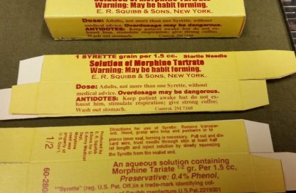 Yellow tag-board printed reproduction box. Little lighter weight than original boxes, this one is really designed to be in a display, not in your pack at a reenactment. Looks good, but can be crushed, there is nothing inside. We ship them flat, it takes a quick fold, and closing the ends to put it together.