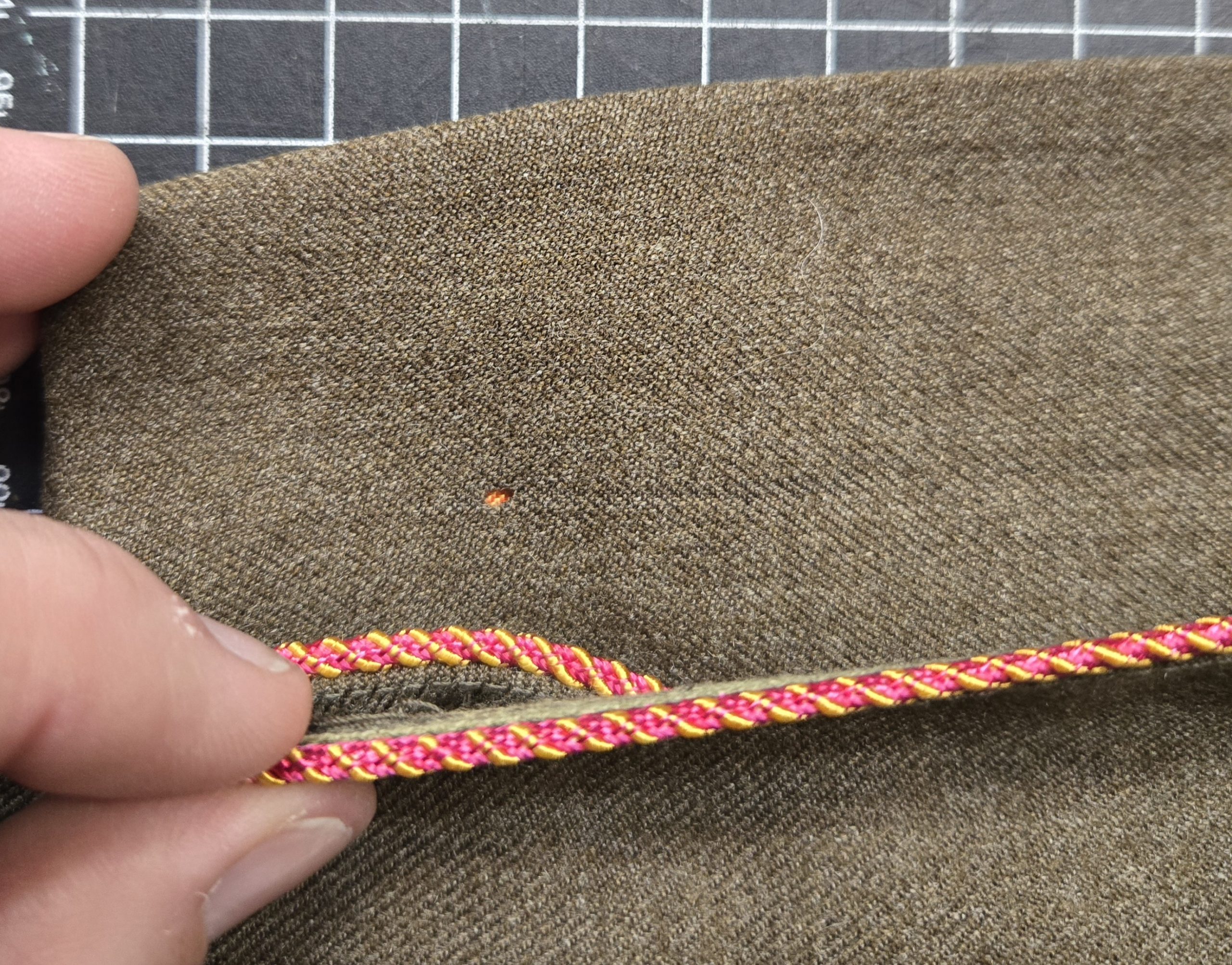 Original WWII U.S. Army enlisted garrison cap with ordnance branch piping, size 6 1/2, in exceptionally well preserved condition and appearing to be unissued. The wool body remains crisp with sharp creasing, the leather sweatband is firm, and the silk liner is clean and intact, showing none of the typical wear normally found on wartime caps. Colors remain strong and the cap retains excellent structure, making it ideal for display, reenacting, or completing a WWII ordnance uniform grouping. There is one very small moth hole on the left front side near the piping that is difficult to notice and largely hidden when displayed. Overall a very sharp original WWII example that has clearly seen little to no use.